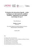 La méthode d’électrophorèse capillaire d’affinité développée permet d’obtenir des temps de migration très répétables, primordiaux pour l’obtention de résultats analytiques de haute qualité. Différentes librairies de molécules ont été étudiées dont ont émergé 3 composés interagissant spécifiquement avec l’ARN représentatif de la pathologie. Ces 3 candidats ont fait l’objet d’une évaluation biologique afin de quantifier la rupture des complexes ARN-MBNL1 par microscopie à fluorescence.