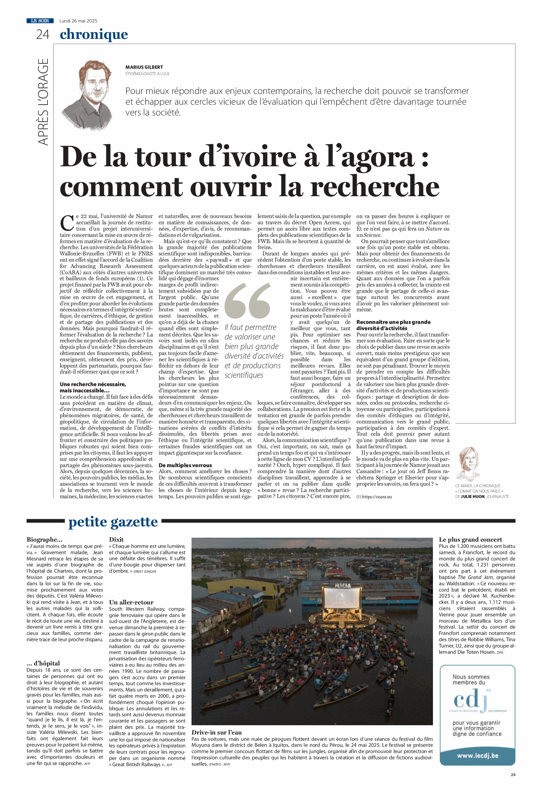 CoARA (Coalition for Advancing Research Assessment); Évaluation de la recherche; Science Ouverte (Open Science); Intégrité scientifique; Éthique de la recherche; Carrière des chercheurs; Open Access Diamant; FAIR Data; Bonnes pratiques; Fédération Wallonie-Bruxelles