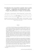 Ce constat ouvre des perspectives intéressantes pour mieux comprendre le développement des habiletés visuospatiales chez l'enfant, ainsi que les modalités de traitement des informations visuelles selon l'échelle spatiale considérée. Une composante essentielle de l'orientation spatiale réside dans la capacité à coordonner différentes perspectives spatiales. Cette capacité implique notamment d'effectuer une rotation mentale pour afin d'aligner sa propre perspective avec celle de repères environnementaux (Surtees et al., 2013). Plus précisément, la coordination des perspectives spatiales (CPS) renvoie à la compréhension que l'apparence d'un objet dépend du point d'observation adopté, ainsi qu'à la capacité d'anticiper cette apparence depuis une position donnée dans l'espace (Fishbein et al., 1972).