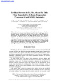 ![]() | Guisbiers, G., Strehle, S., Van Overschelde, O., & Wautelet, M. (2006). Residual stresses in Ta, Mo, Al and Pd thin films deposited by E-beam evaporation process on Si and Si/SiO2 substrates [Paper presentation]. 8th International Workshop on Stress-Induced Phenomena in Metallization, Dresden, Germany. |